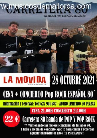 Grupo de pop-rock al alcance de tu bolsilloNo disponiblePop - Rock Palma (Baleares) 17/02/2022CARRETERA 80. Grupo tributo al pop-rock de la movida de los 80 se ofrece para tocar. Si tienes alguna boda, cumpleaños, aniversario, o bien son las fiestas de tu pueblo de tu barrio, para cualquier tipo de local restaurantes, terrazas, locales de mús... -